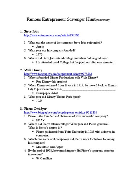 Read Online Famous Entrepreneur Scavenger Hunt Answers Key Doc