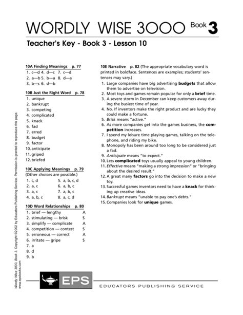 Read Online Wordly Wise 3000 Book 3 Answer Key Reader